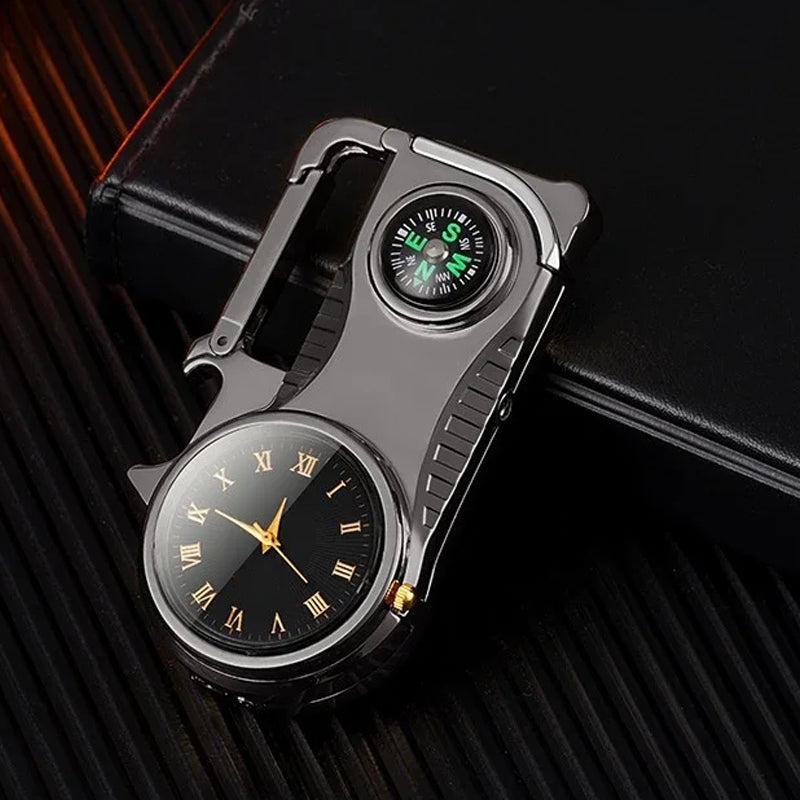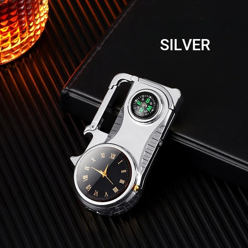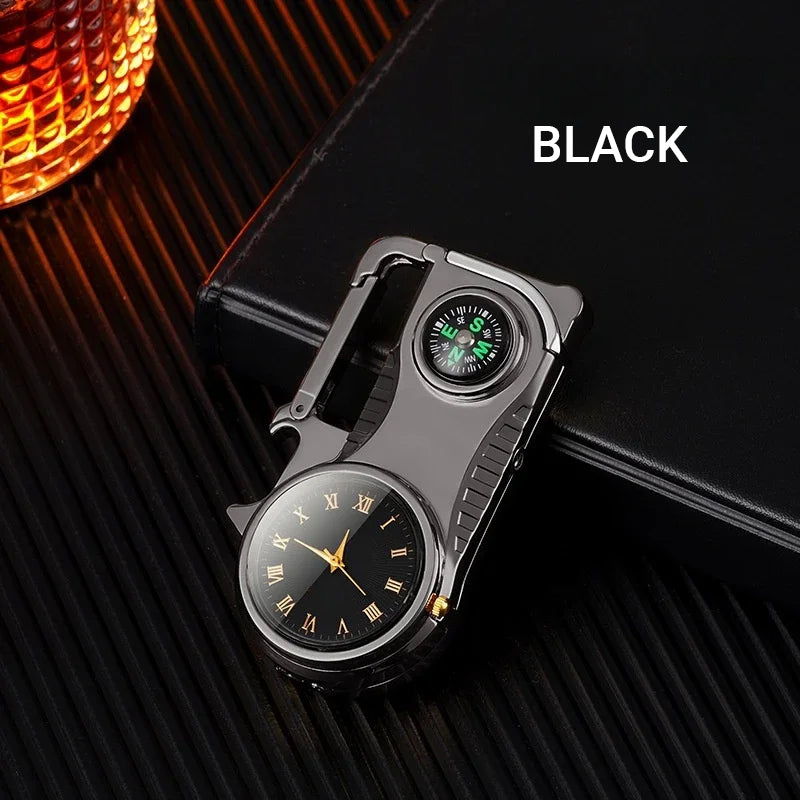 MULTIFUNCTIONAL DESIGN - The 4-in-1 Windproof Metal Butane Compass Watch Keychain Lighter is the ultimate accessory for outdoor enthusiasts. Combining a butane lighter, compass, watch, and keychain, this sleek gadget offers everything you need for your adventures in one compact design, ensuring you’re always prepared for the unexpected.