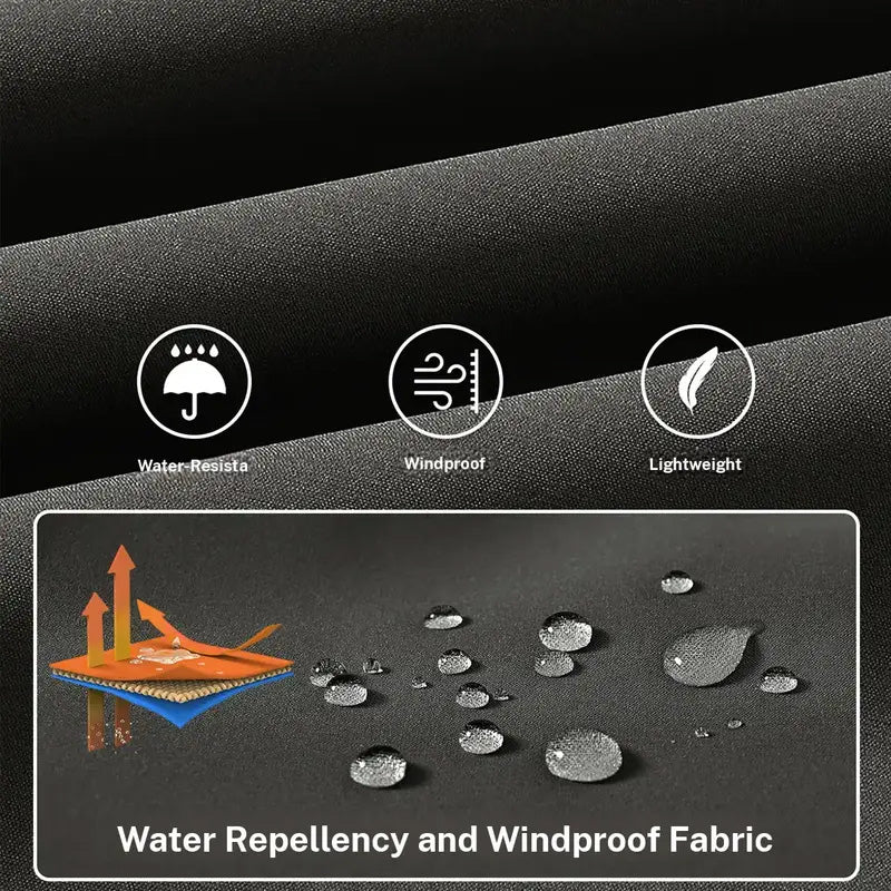 WIND-RESISTANT WRINKLE-RECOVERY FABRIC:Crafted from high-quality, lightweight fabric engineered to resist wind and wrinkles. It holds its shape after extended wear or packing, eliminating the need for frequent ironing.