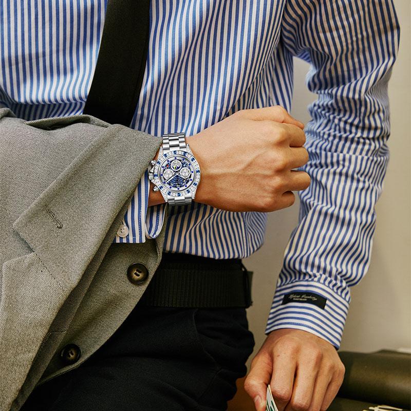 SIX-HAND CHRONOGRAPH MOVEMENT: Offers precise timekeeping and stopwatch functionality for versatile daily use, allowing you to accurately track elapsed time for various activities, from sports to meetings.