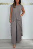 🔥2025 New arrivals - 50% OFF🌺Laney Pleated Short Sleeve Irregular Midi Top and Elastic Waist Wide Leg Pants Set✨