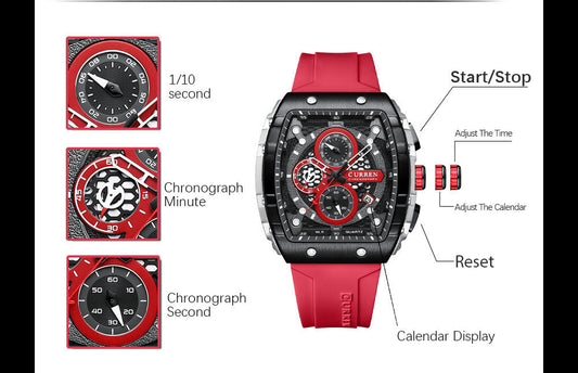 Men's Square Sport Watch| 50mm Oversized Dial, Dual Movement, Men’s Waterproof Luminous Sport Watch