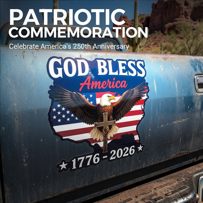 COMMEMORATIVE PATRIOTIC DESIGN - Celebrate America's 250th anniversary with this unique design. It combines the eagle, flag, and cross, making it a powerful statement of faith and national pride for display on your vehicle.