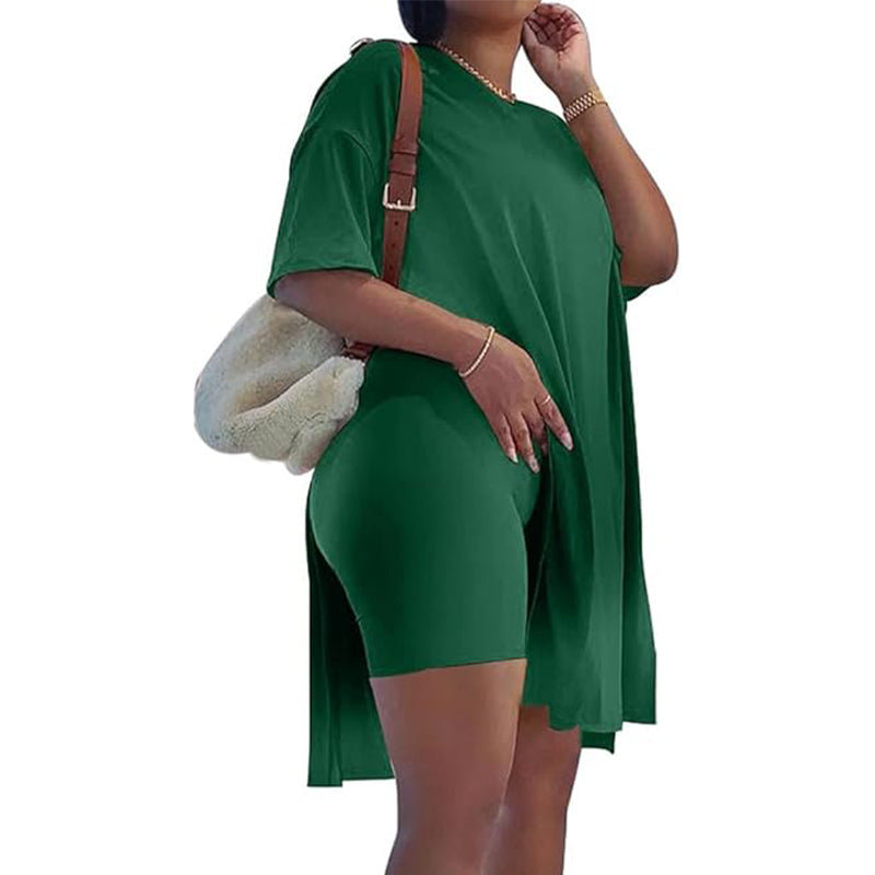Package Includes: 1 * Women's Solid Round-Neck Dress & Shorts Set