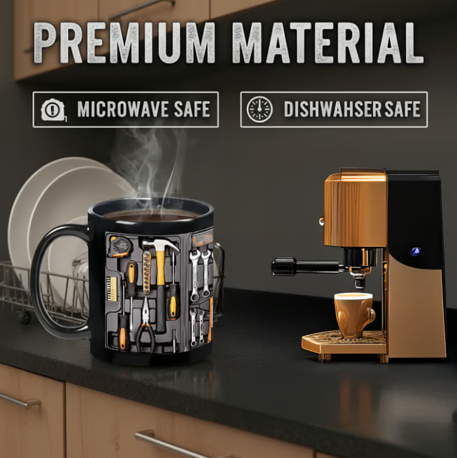 Forget about plain, boring cups that lack any real personality. The realistic toolbox design honors his hard work, making his morning coffee feel like a well earned reward.