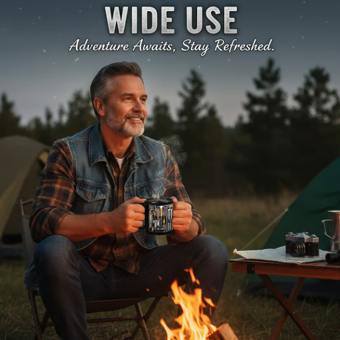Whether he is working in the garage or enjoying a camping trip outdoors. The sturdy handle and solid build make it easy to hold, ensuring he stays refreshed wherever his projects take him.