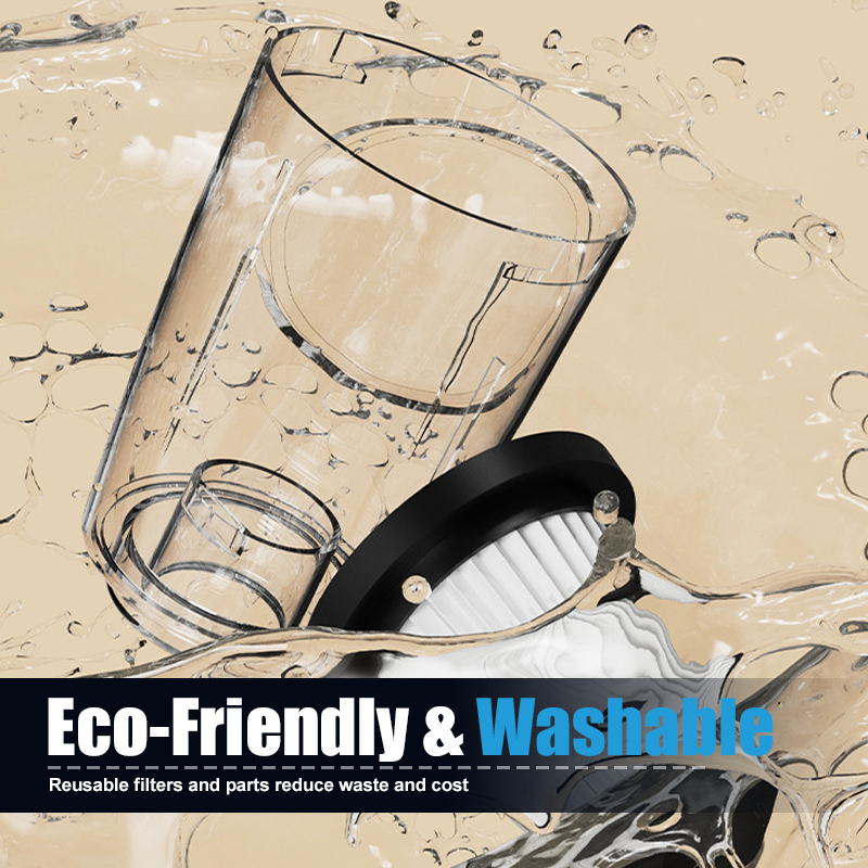 EASY MAINTENANCE & ENVIRONMENTALLY FRIENDLY - All filters and nozzles are washable and reusable. This saves money and reduces waste. The 600 ml dust container minimizes the frequency of emptying and ensures uninterrupted cleaning sessions.