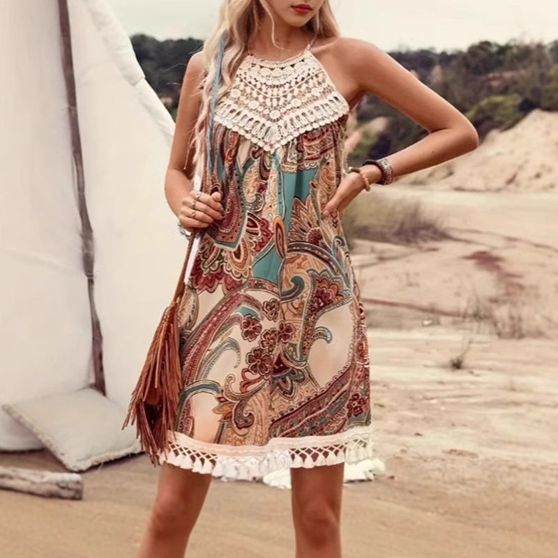 1 x Women's Holiday Casual Retro Floral Print Halter Dresses
