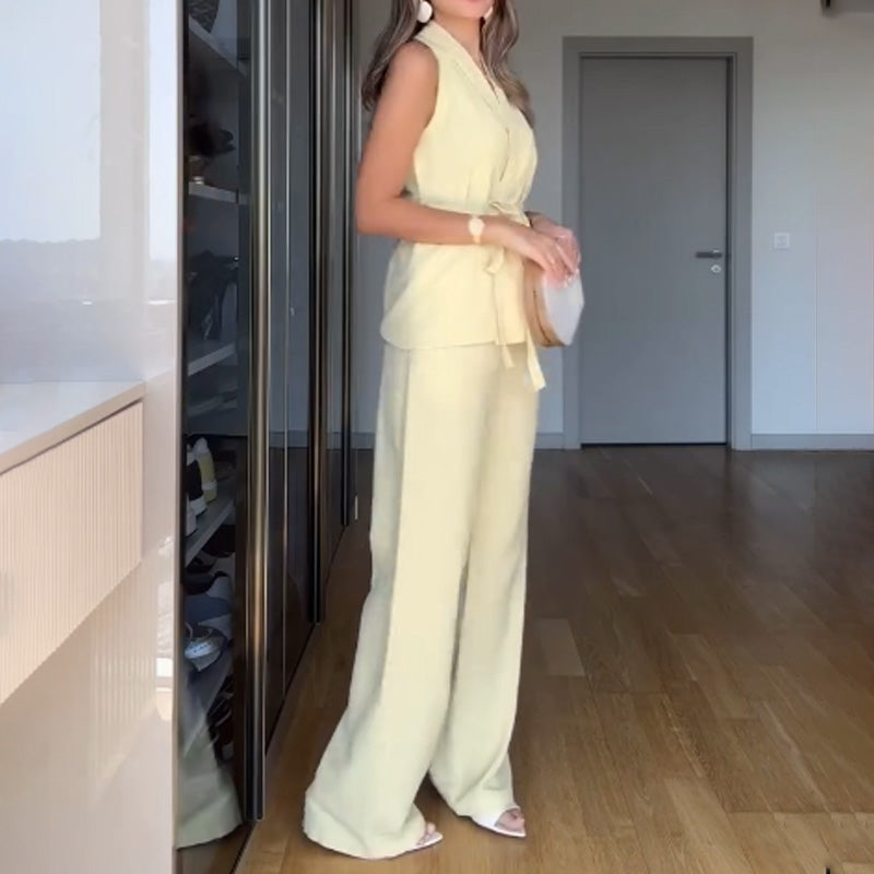 🔥 Summer Hot Sale 🌊 V-Neck Sleeveless Top and Straight-Leg Pants 2-piece suit